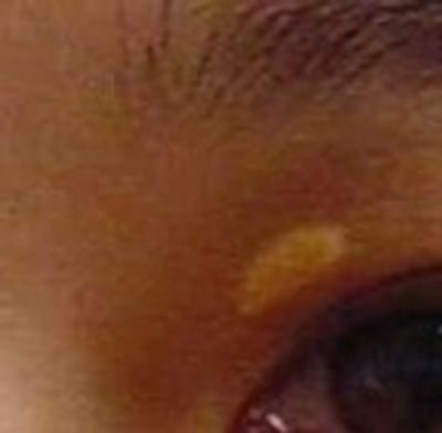 黃斑瘤是一片扁平或輕微凸起的黃色斑塊,它出現於眼部周圍。